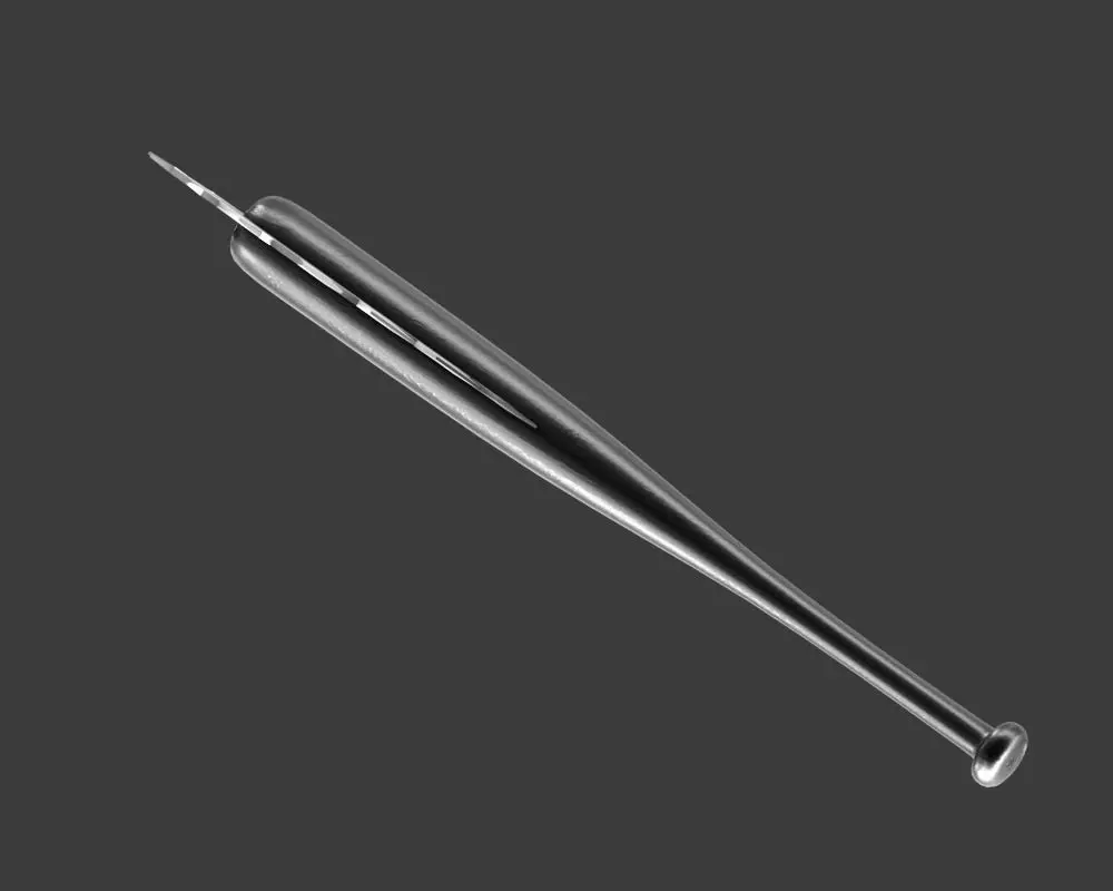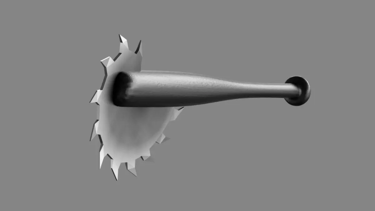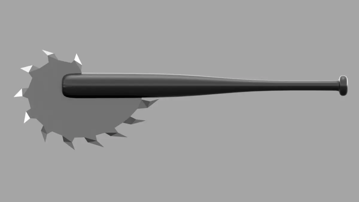Disk saw-toothed baseball bat for horror scenes in games.Colour - black.Material: wood, steel.Realworld scale: bat lengh 73,5 cm, diameter 6,5 cm; overal lengh 82 cm, overal width 26 cm.