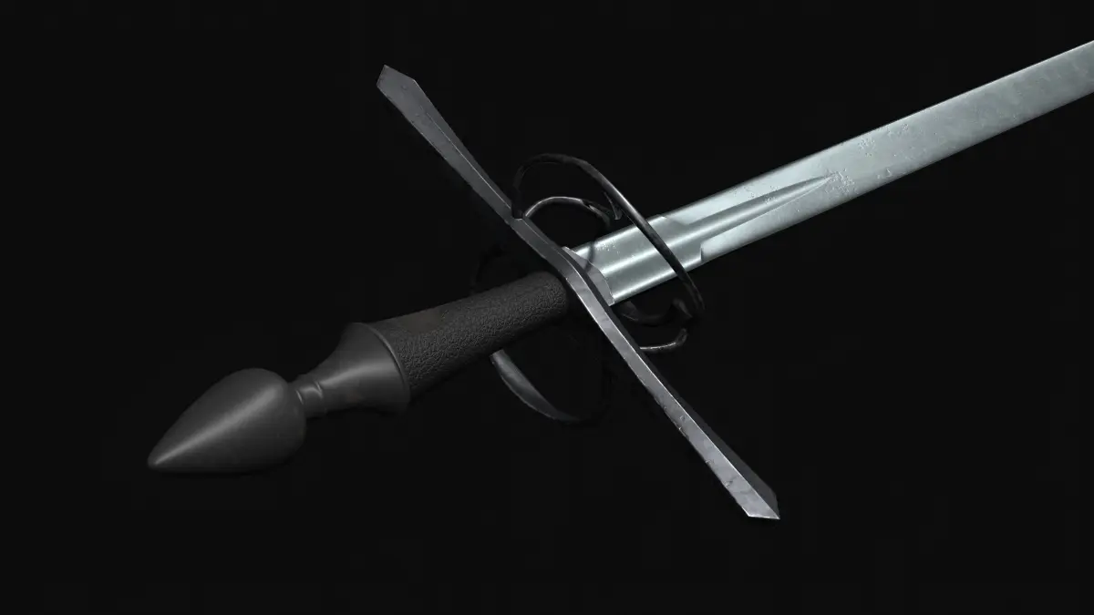 This Saxon battlesword from the 1580s features a broad double-edged blade, crafted for power and durability on the battlefield. Its robust hilt and straight crossguard reflect the transitional design between medieval arming swords and early Renaissance military weapons.