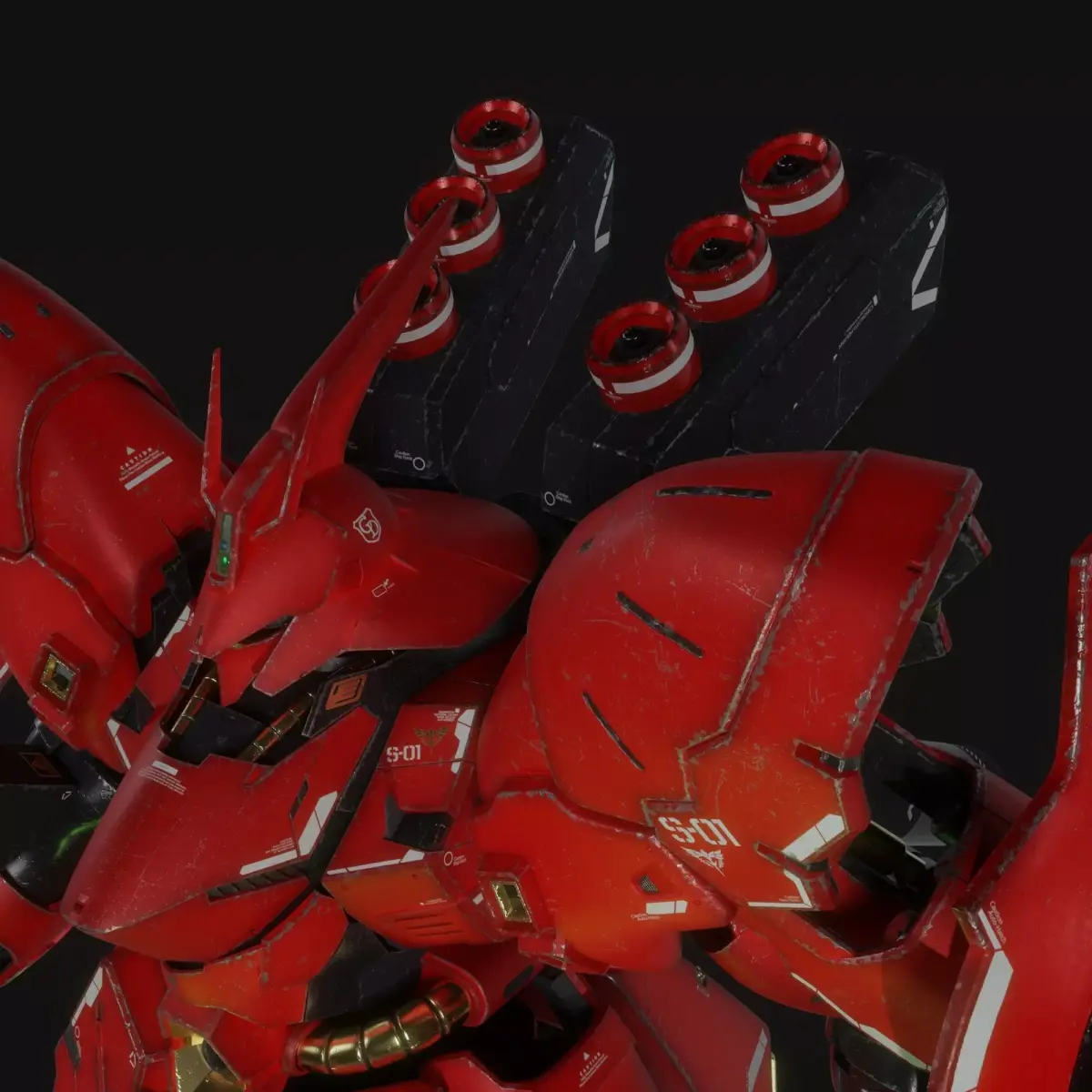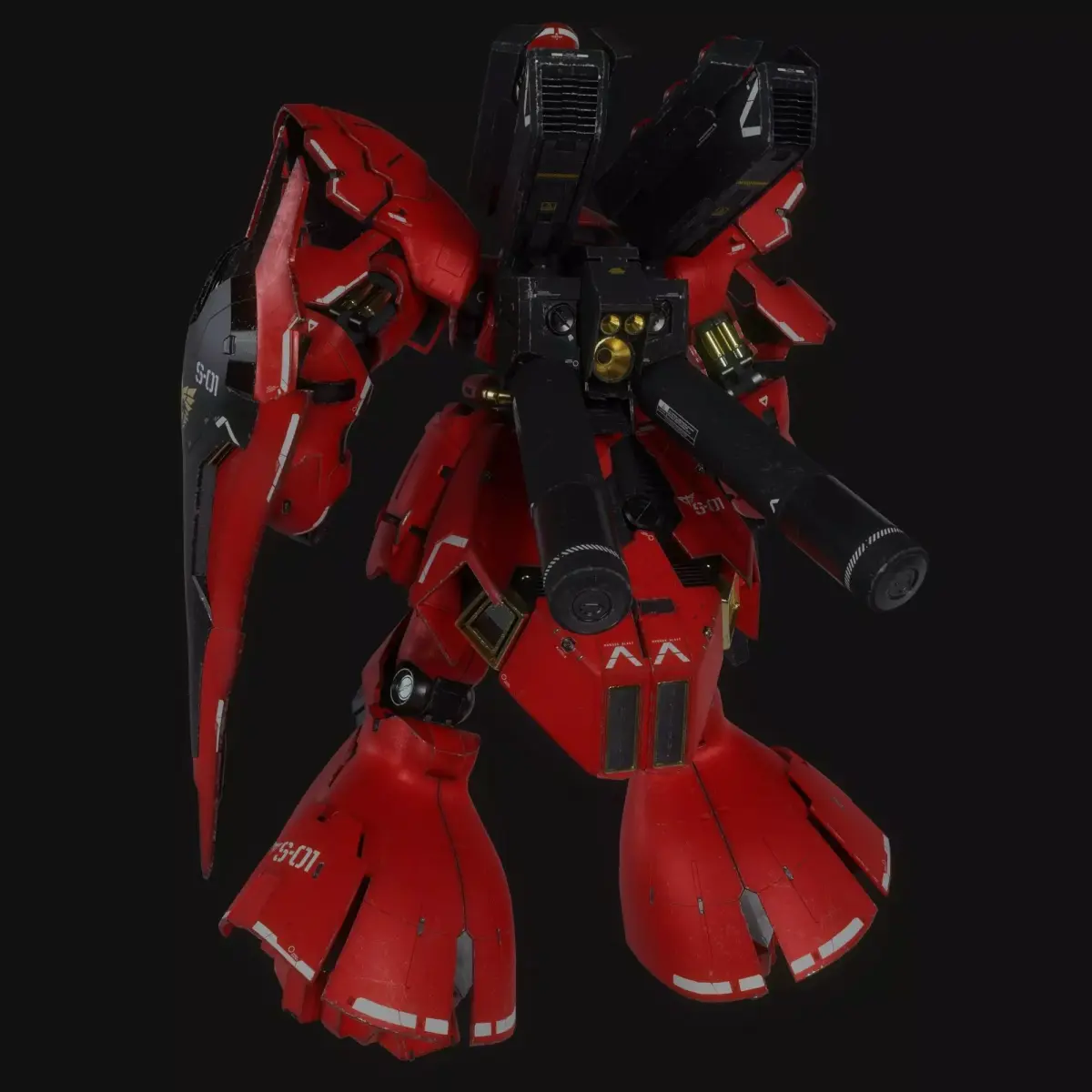 This 3D model is Sazabi RG style custom build with weathering finishing, the model is 1:1 scale (cm). The body and armor also have joints and constraints.