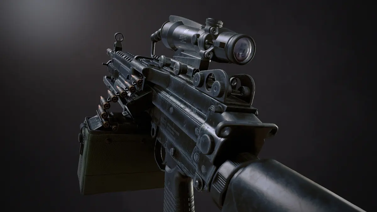 Game-res model of a 5.56mm caliber light machine gun based on the FN Minimi Mk3. Fully textured and optimized for use in First Person Shooter (FPS) games.