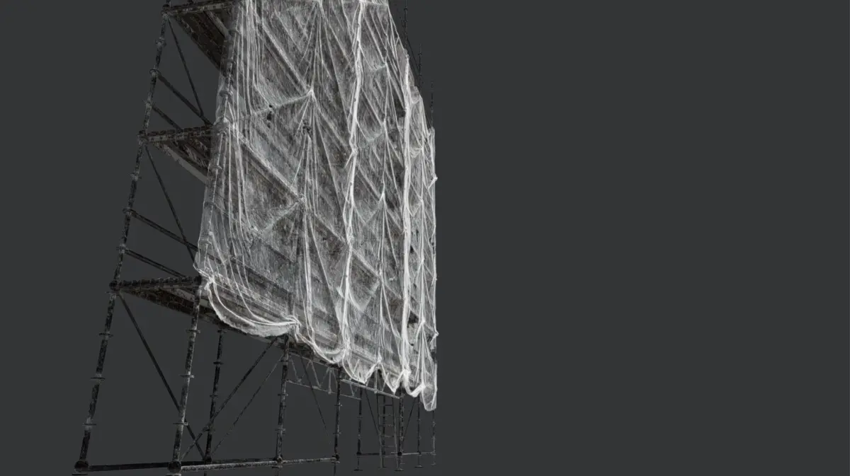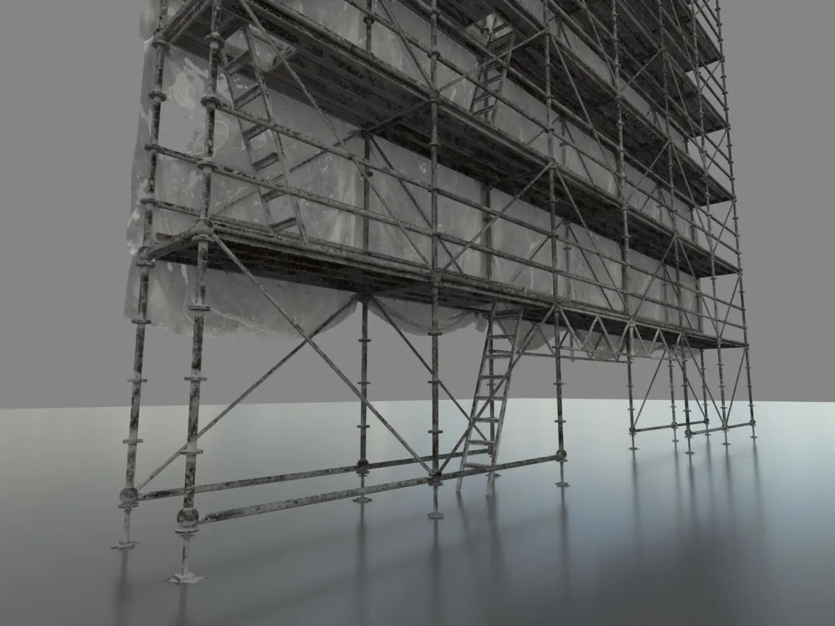 For renovation you need this : the scaffolding and tarpaulin.4 modular pieces, 1 left part, 1 full for center or unique part and the right part.3 tarpaulin HD + ladder. Plaster, rust, hole and paint on all elements.120 maps, 2 versions of elements. 2k and 4K.