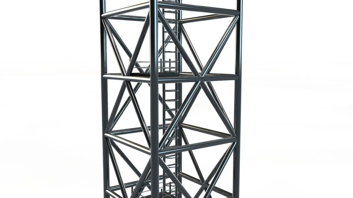 This file cointains a metal 3d model af a scaffolding tower construction made with cinema4d r14.