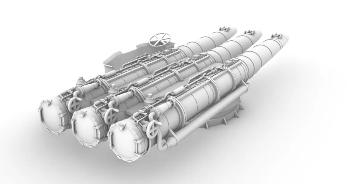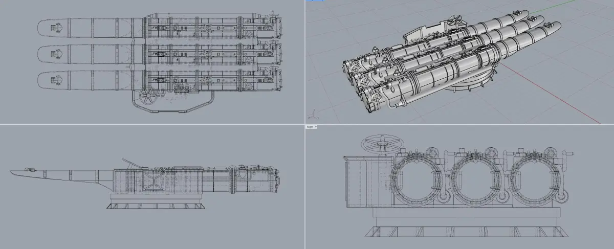 The model of the torpedo launcher has been made based on found blueprints and photographs, at a scale of 1:200. It is fully ready for printing.Attention: Not all printers may be able to handle this print at home. I’m printing it using an MJM (MultiJet Modeling) printer with wax support. The tube thickness is 0.1 mm, and the wall thickness of the launch tube is also 0.1 mm. However, modern home printers are now often capable of working with this level of detail.