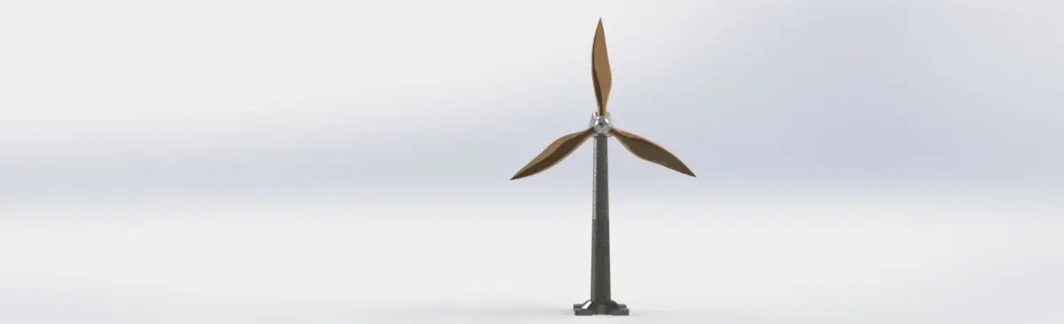 This is a scale model of a wind turbine. It serves to generate electric energy using the speed of the wind that makes the propellers of the turbine move, which in turn makes the shaft and its electric generator move.