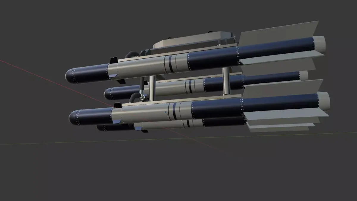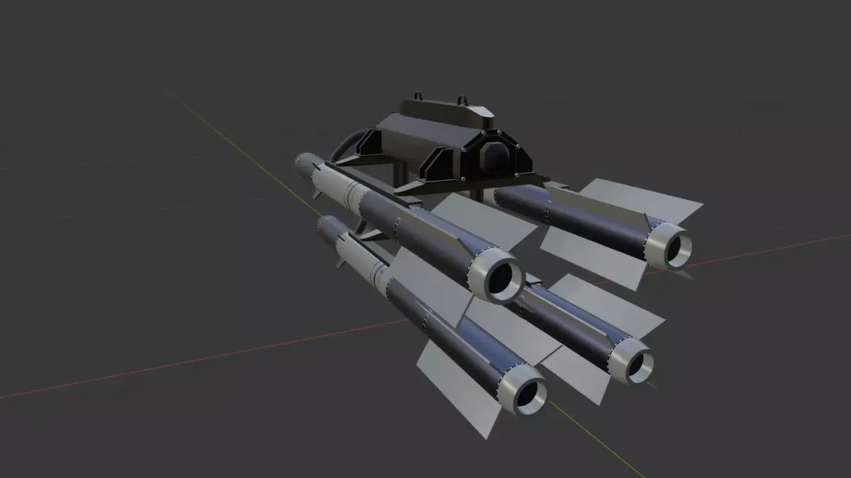 Aerial Rocket Pod (4-Missile Rack)Unleash precision firepower with this high-detail aerial rocket pod, designed for drones, helicopters, and cinematic siege scenarios. Featuring four stylized missiles with metallic tips and stabilizing fins, this baked asset is optimized for real-time use in games, animations, and military simulations. Fully baked textures for plug-and-play deployment Compact rack design ideal for UAVs, light aircraft, or sci-fi vehicles Game-ready topology with clean geometry and efficient UVs Perfect for cinematic trailers, modding, or asset packs