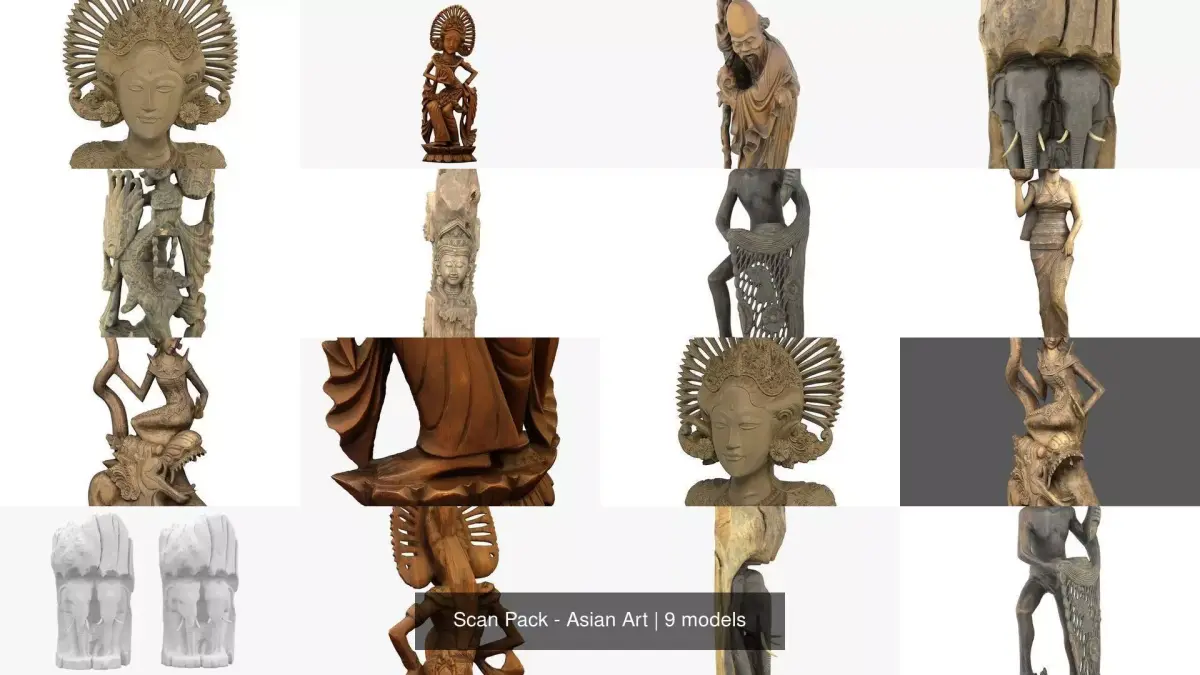 This pack contains 9 photoscanned statues. All models come with full PBR texturesets (Basecolor/Albedo, Roughness, AO and Normal) at 4096x4096 and 2048x2048 resolution. The normalmaps were baked from the high poly original scans. The original 8192x8192 basecolor maps are included as well. All models include at least the following formats: BLEND, FBX, OBJ, DAE.