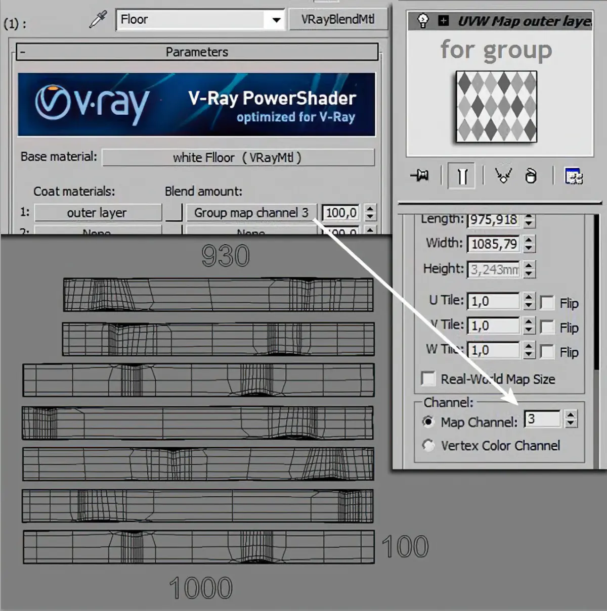 Wooden parquet painted in Scandinavian style. It is geometry, the modifier stack open. For each of the seven strips assigned a UVW Map, as well as the third channel UVW Map assigned to the group with the background pattern. The dance floor is easily changeable: Color parquet wood color inside the brackets which can be seen in sections, Color Dirt, Wallpaper for mixing two-color parquet. The archive decomposed parquet area 4500 x 5500 and 7 bars separately.