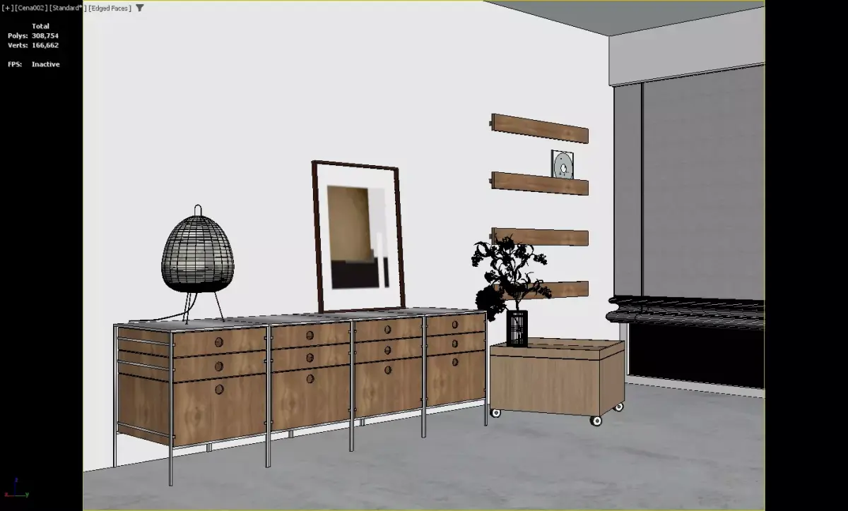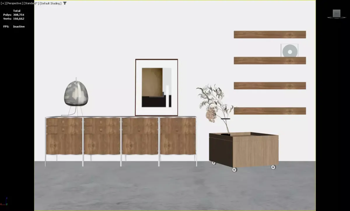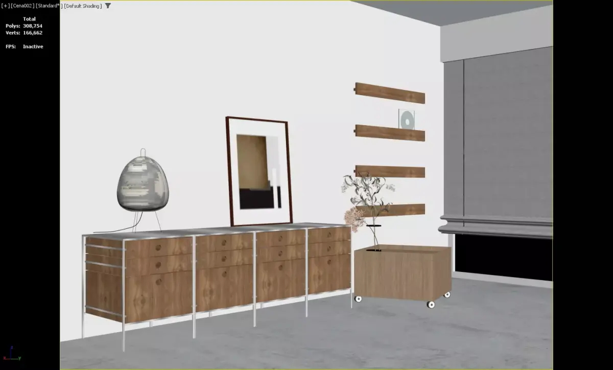 HomeCatalogScandinavian Living Room with Modular Dresser and Paper Lanterns 3D model