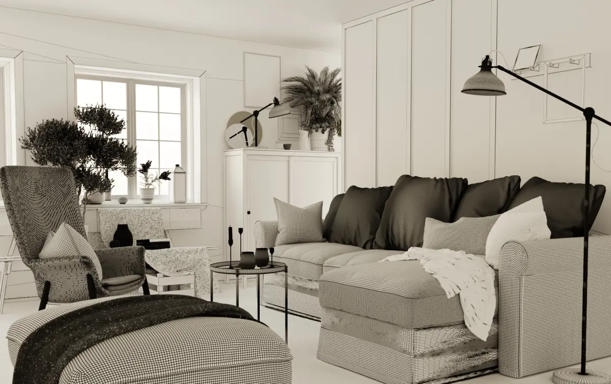 Ready-to-render copy of a Scandinavian modern interior from IKEA.All objects created in the scene actually exist in the IKEA catalog
