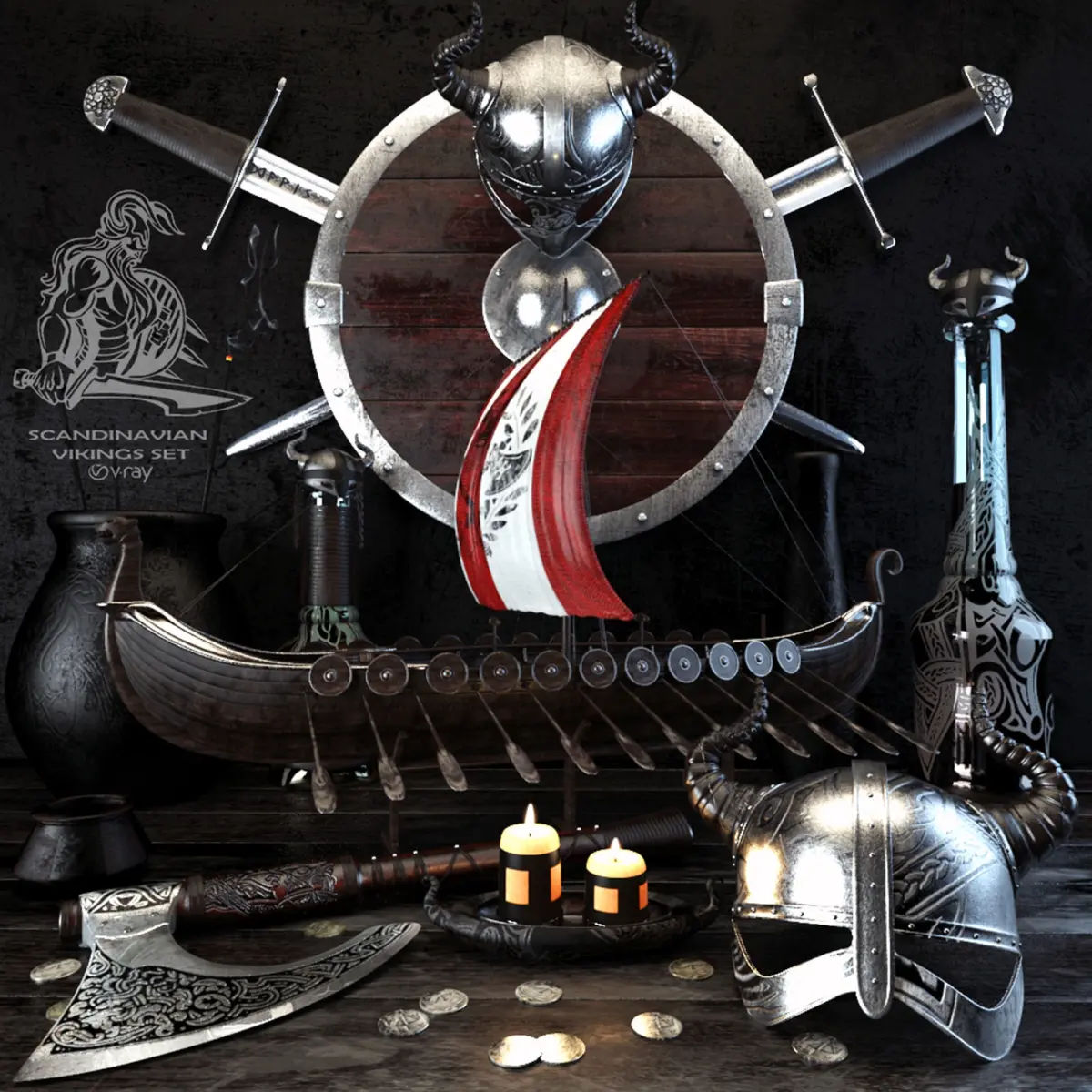 Theme set - Scandinavian vikings set - dedicated to the Scandinavian nation, to make sea trips to the 9-11 centuries. The word Viking means - floating in the sea. The term Viking in Scandinavia social phenomenon characterized as the simple free men went to sea trips in search of a better life. Other nations called them barbarians, because of their excessive cruelty. Viking warship - Drakkar (Dragon). 30 meters in length. It holds up to 80 soldiers. Speed rea