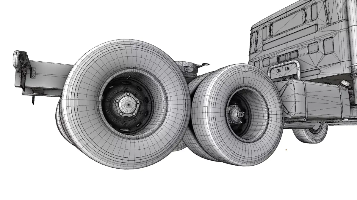 The exterior is fully modeled and extremely detailed, including chassis, suspension, wheels, cab structure, lighting, exhaust system, and period-correct components. Particular care was taken to replicate real wheels and period-accurate implementation choices, reflecting how these trucks were actually built and assembled in the 1970s.