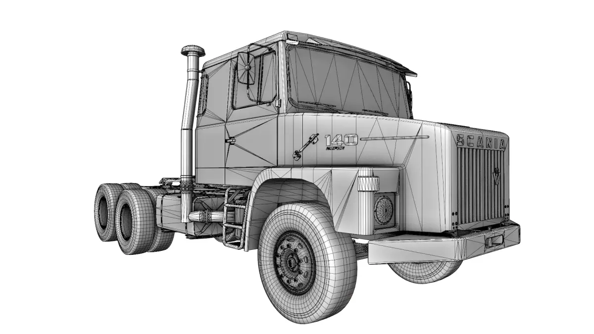 Features– Stock Scania LS140 6x2 (4200 mm wheelbase) configuration– Custom Sleeper cabin that was common at the time– Extremely detailed exterior with period-correct components– Realistic wheels and authentic construction approach– Game-ready asset optimized for real-time use– Ideal for simulators, traffic vehicles, cinematics, and visualization