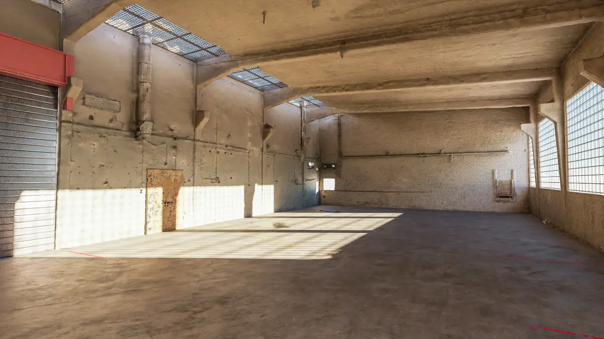 a big hall where you can build your workshop, warehouse or anything you want.its a photoscanned interior that has been reworked, doors and windows have been added (seperate meshes)the floor is lowpoly with a texture that would fit a car workshop, but you can simply change it to anything you like.the textures for the added stuff (floor, windows, doors) are PBR and made with mixer