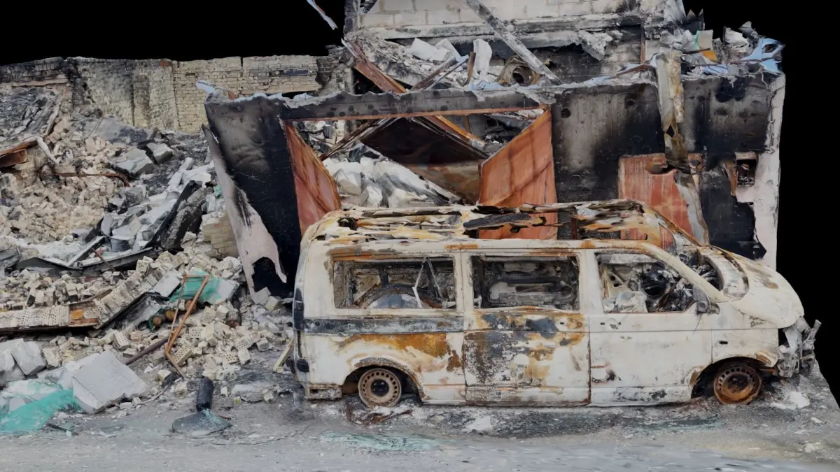The set includes 6 scans of facades from the war in Ukraine
