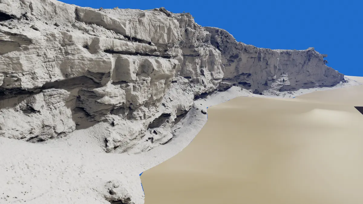 Hi-res photoscanned sandy cliff. The photoscan was made with several hundreds of pics to get the fine details. Model comes with 16384X16384 hires Albedo, AO maps., normal and detail normal maps. Vertices: 20643395 Polygons:40831496 . Ideal for baking textures from or for use as high detail mesh. FBX format