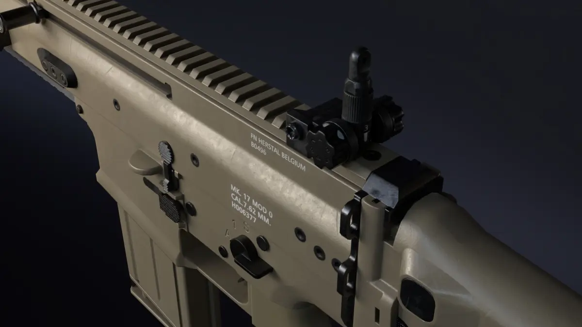 Package contains one SCAR-H assault rifle which is saved in four formats. First one is standard FBX file, second OBJ, third is Unity package and fourth is blender file.