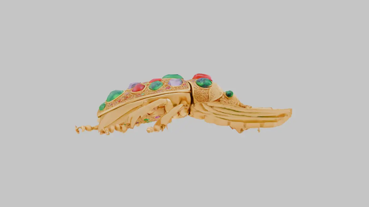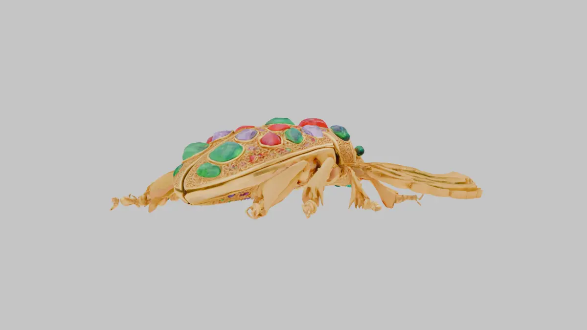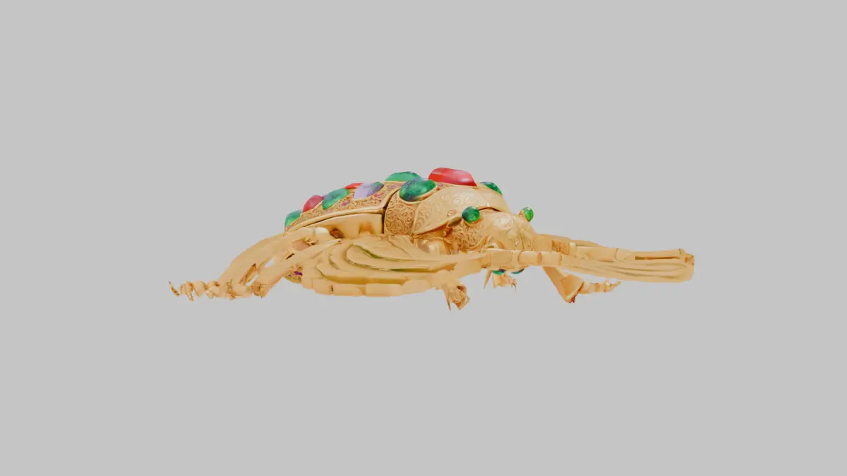 Detailed 3D model of a Scarab Beetle adorned with precious jewels. This model is perfect for use in your next project, whether it's for a video game, animation, or 3D printing. The model is highly detailed and accurate, and it comes with high-resolution textures. The scarab beetle is a symbol of rebirth and renewal, and it is sure to add a touch of elegance and sophistication to your project. Get this exquisite 3D model and elevate your work to the next level. Perfect for historical settings, fantasy worlds, or unique decorative elements.