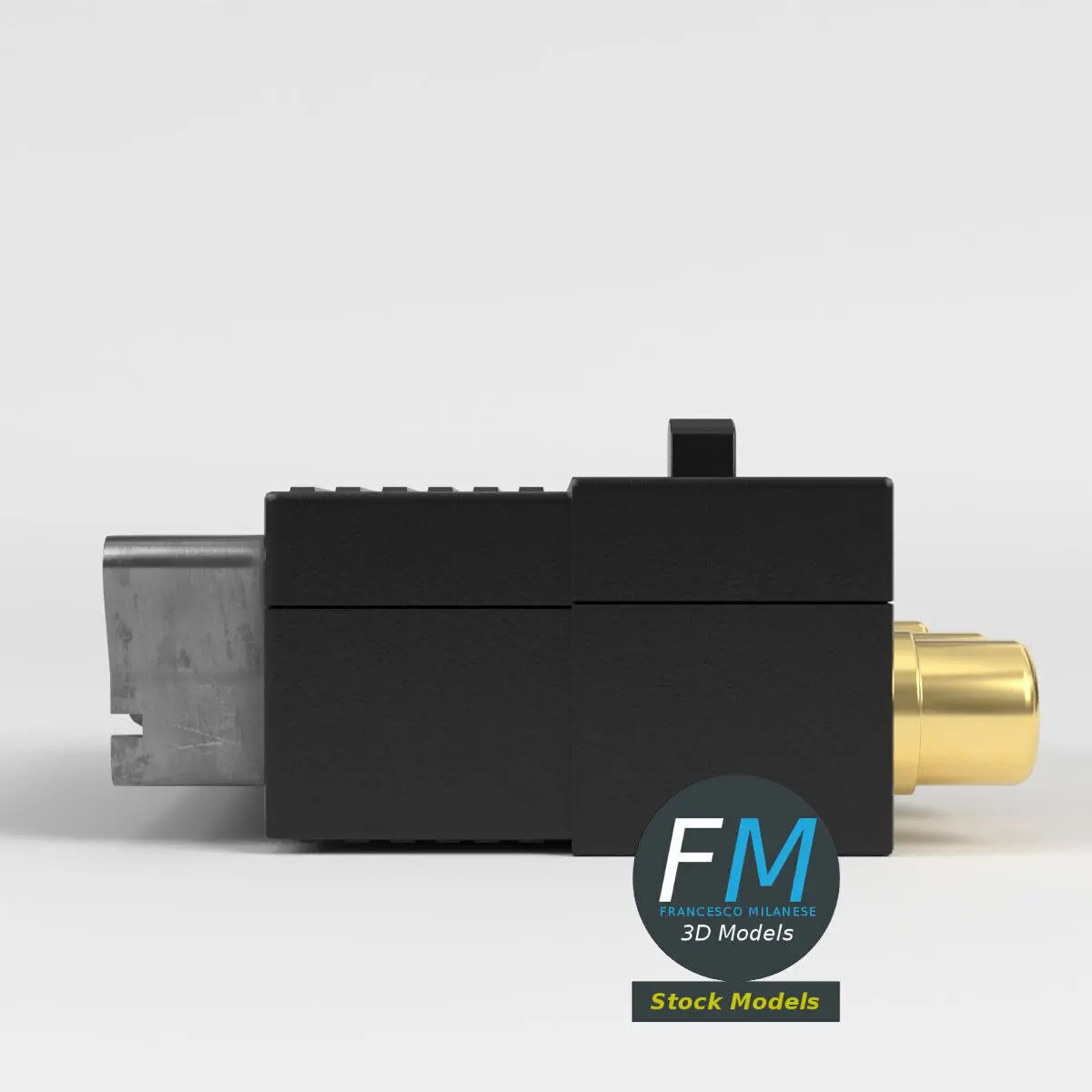 SCART RCA S-Video adapter 3D Model. 2 objects (main case, switch), sharing the same non overlapping UV Layout map, Material and PBR Textures set. Production-ready 3D Model, with PBR materials, textures, non overlapping UV Layout map provided in the package.Quads only geometries (no tris/ngons).Easily customizable: UV unwrapped geometries; UV Layout maps provided in the package as png with alpha images.Each Object, Material or Texture provided in the package has a unique, meaningful name.Made in Blender 4.3.2 with Cycles Principled BSDF PBR shader with textures included (Eevee compatible), then exported to OBJ and FBX; materials and textures made in Substance Painter (Adobe 3D Painter), exported for PBR, Cycles, V-Ray, Unity, Unreal.PROMO IMAGES: the first image has been rendered in Cycles for Blender; in particular, you can find 11+ promo images in this description: