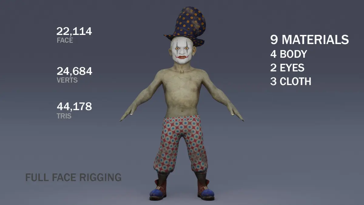 Scary Clown 2 game character for Horror games3d model of a realistic character of a horror Scary Clown 2 creature.