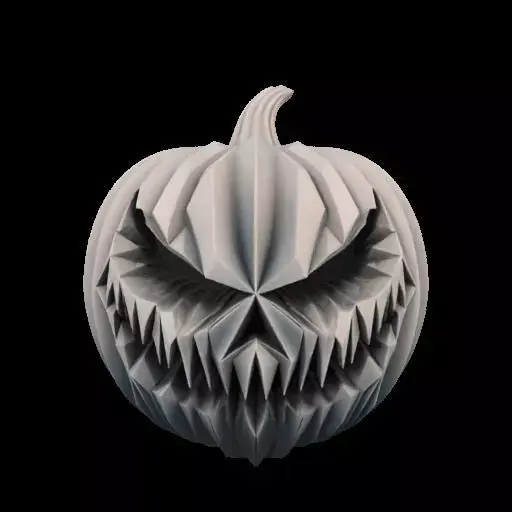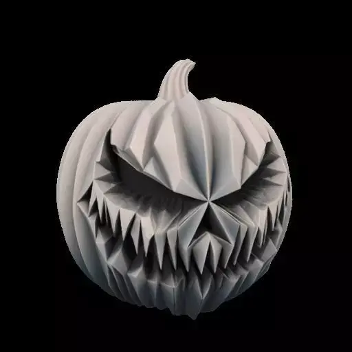 This 3D-printed pumpkin face is designed to be dramatic and terrifying, with sharp origami-style folds, slanted triangular eyes, and a jagged mouth full of uneven teeth. Vertical grooves add natural pumpkin texture while keeping the design stable and easy to print. A bold and frightening jack-o’-lantern perfect for Halloween.