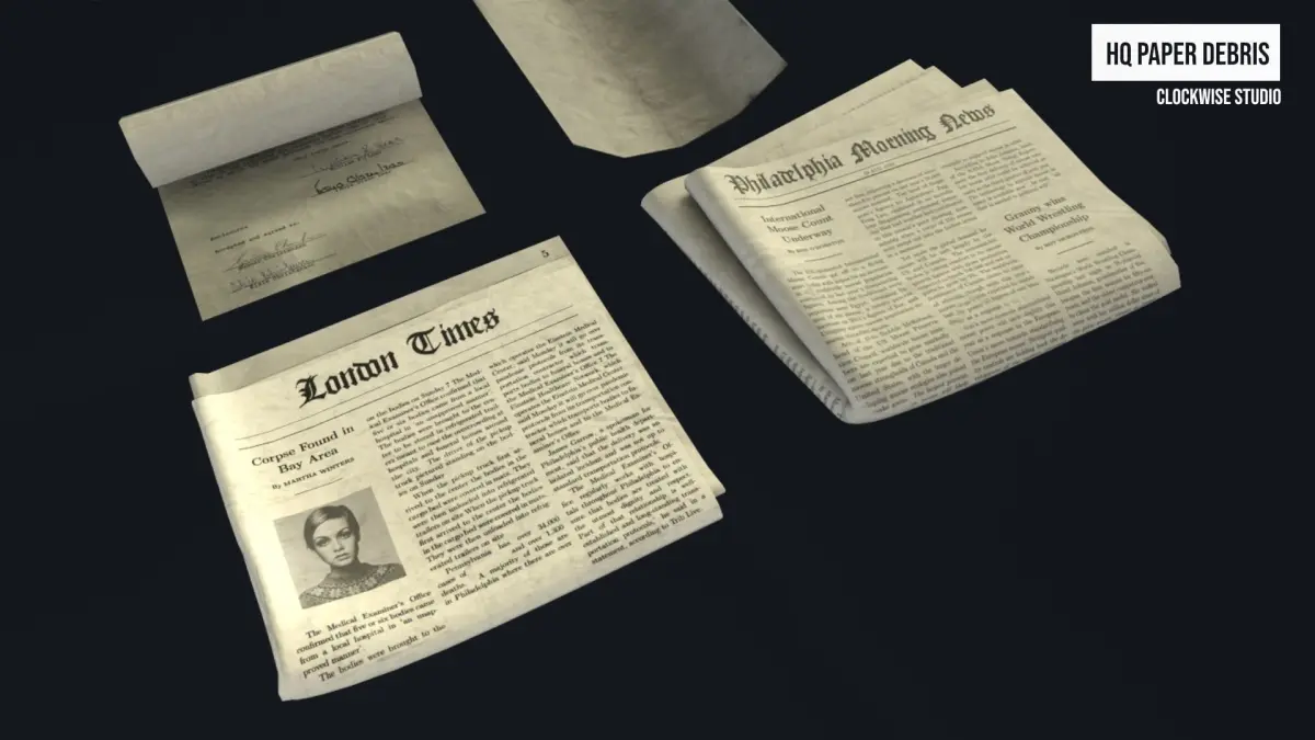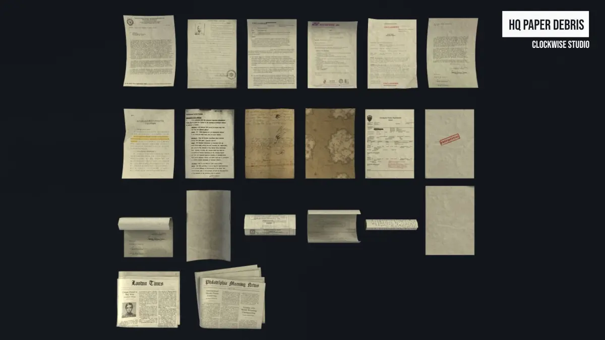 Set of HQ Paper Debris20 - Meshes4 - Materials21 - Prefabs