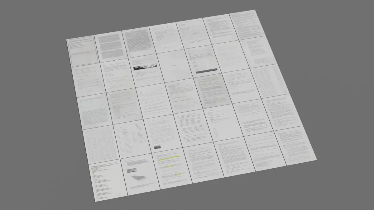 - Composed of 1 object and 35 mesh islands (1 per sheet of paper).