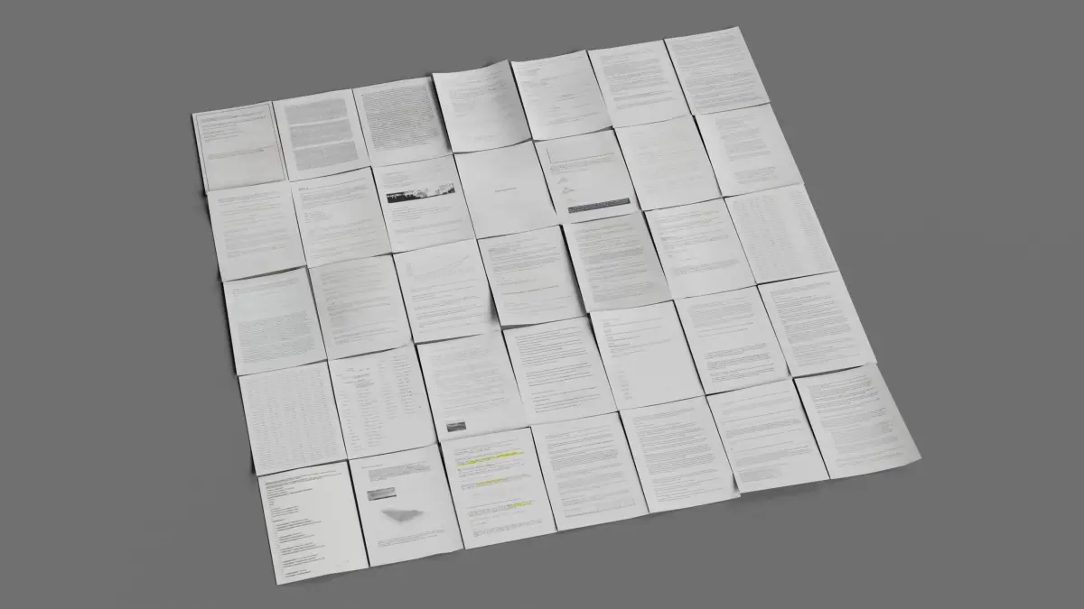 35 miscellaneous printed pages, A4 size. What's written on the pages are unreadable filler text and diagrams.