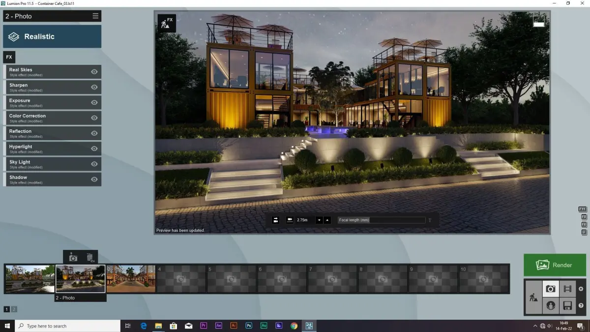 SCENE LUMION 11 5 AND EXTERIOR CONTAINER CAFE