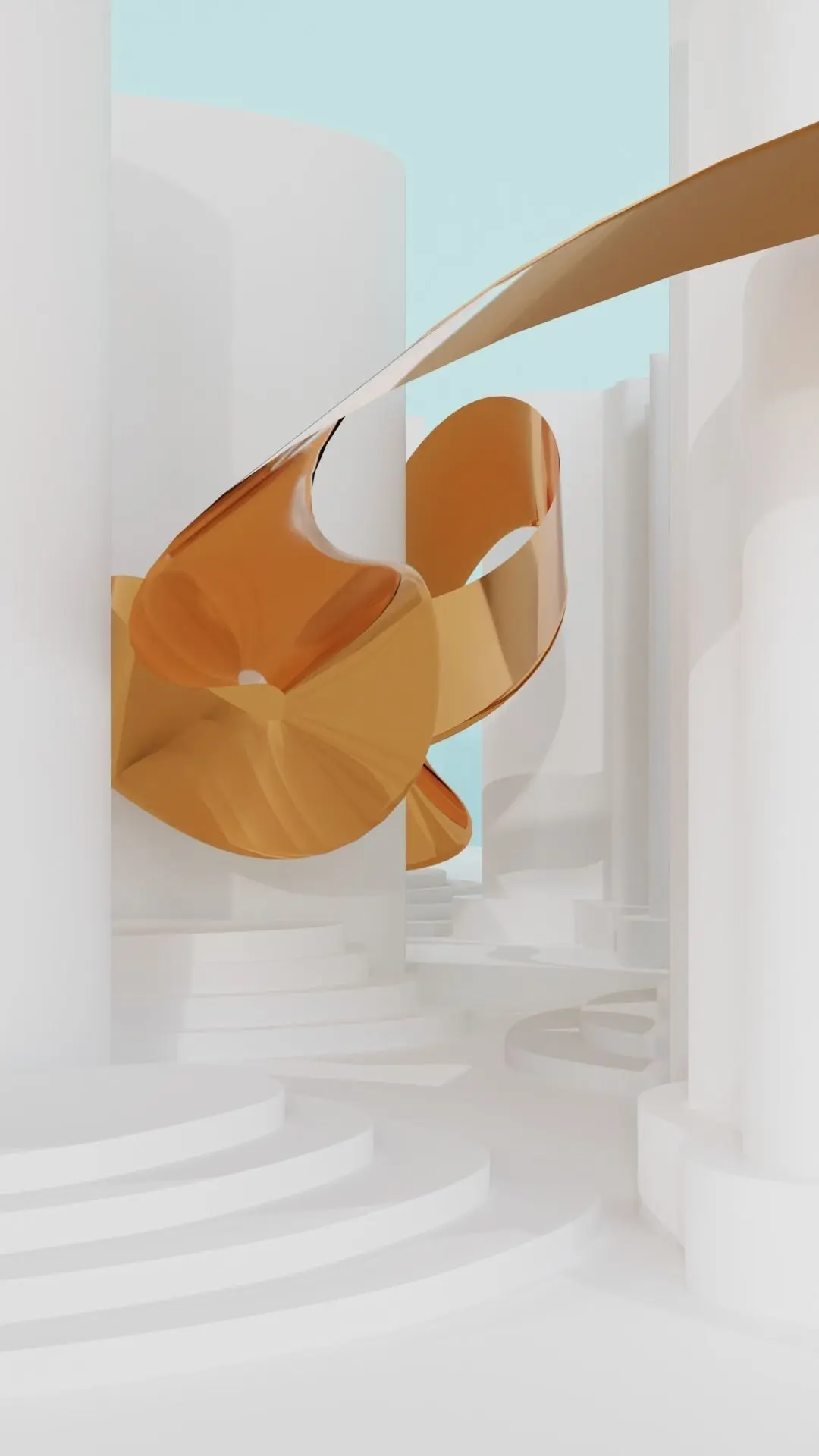Abstract exterior scene with ribbon flying by. Set up with few decorative curved walls and stairs good for architect designs. Scene with few cameras and light set up. Ready made for render. Adjust as You want. Play with it!