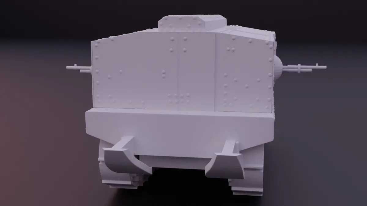 Like most early tanks, the Schneider was built like a simple armored box, without compartmentalization of the inner space. It lacked a turret, with the main armament, a short 75 mm cannon, in a sponson on the right side. By later standards it would therefore have been an assault gun instead of a tank. The vehicle was considered a very imperfect design, because of a poor layout, insufficient fire-power, a cramped interior and inferior mobility due to an overhanging nose section, which had been designed to crush through the belts of barbed wire but in practice caused the tank to get stuck. Improved designs were almost immediately initiated but the production of these, the Schneider CA 2, CA 3 and CA 4, was eventually cancelled.