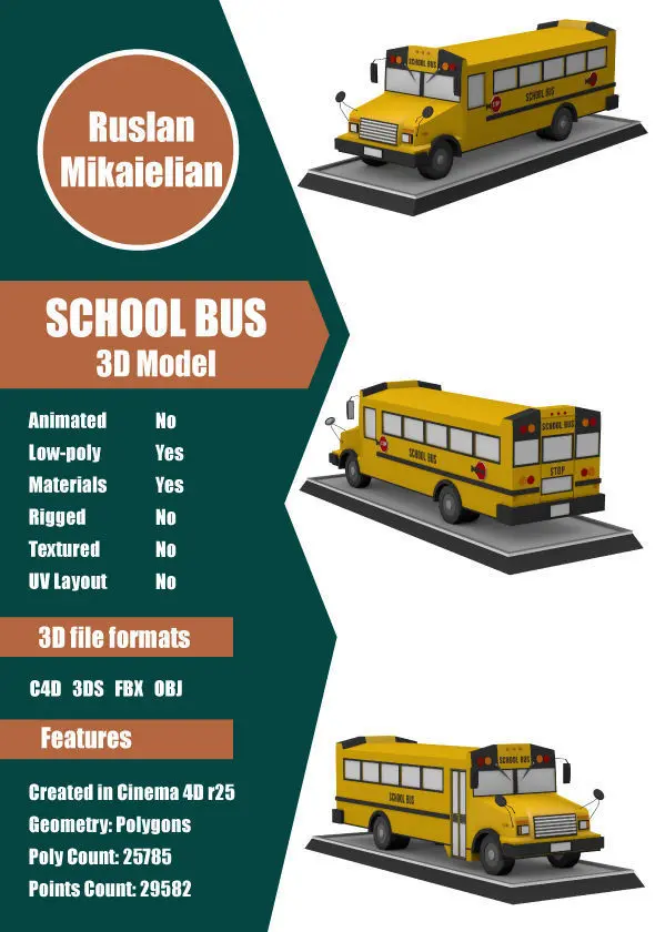 This is a great Low Poly School Bus 3D model for you projects.