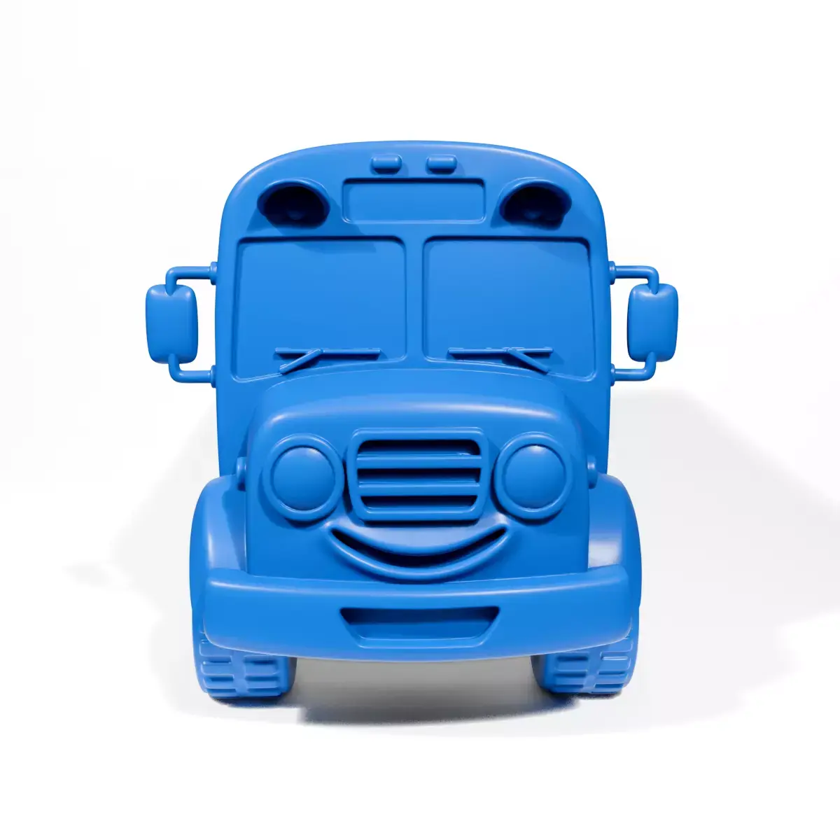 The design reflects a classic school bus, aiming to evoke nostalgia and charm with its smiley front face and detailed features.