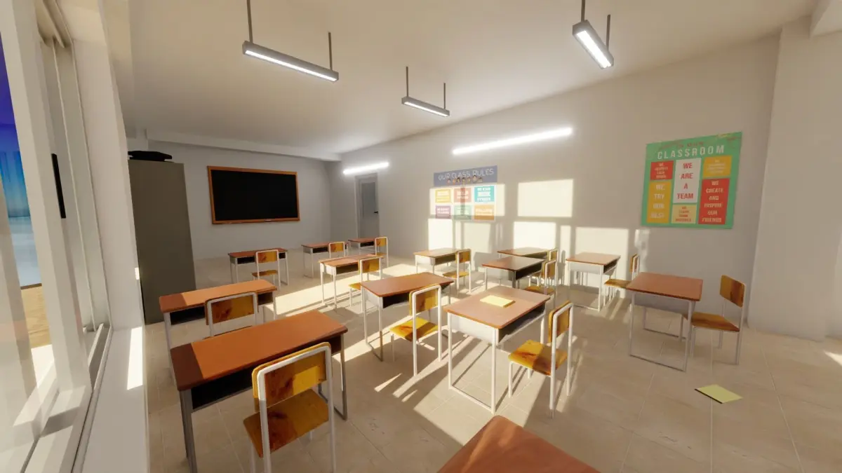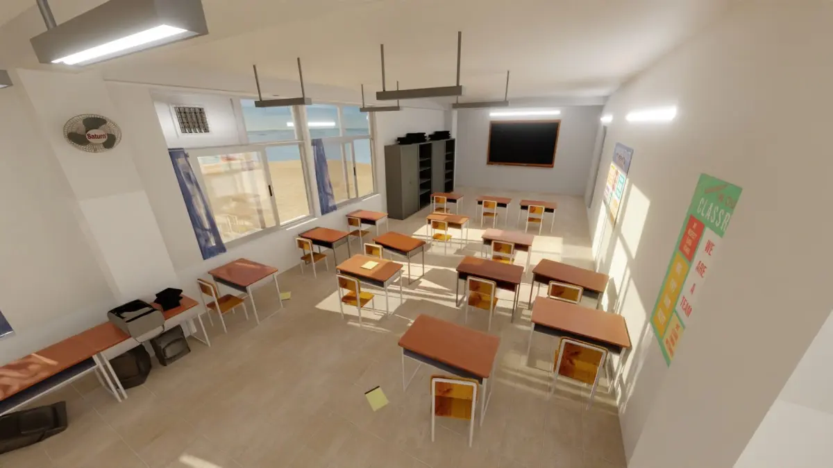 This is a High School Classroom model. The model is suitable for any visual production.All geometry and visual aspects of the model are optimized to give you highest possible quality for up to 4k renders.There is post-production used on these renders.Clean and optimized topology is used for maximum polygon efficiency.No extra plugins are needed for this model. format:-FBX version Standart Mtl contains all the textures and materials-Obj version Standart Mtl all the textures and materials