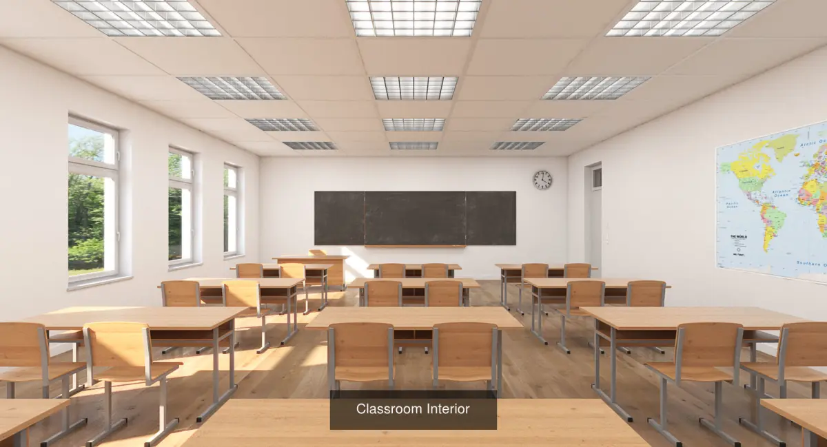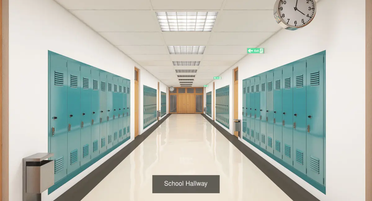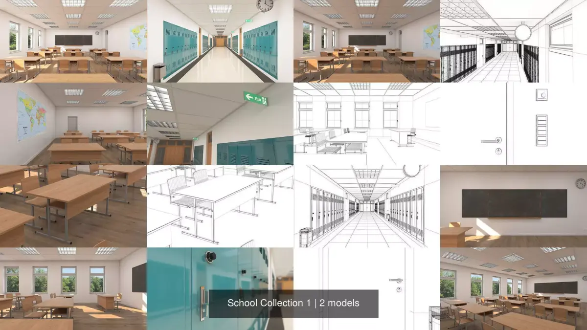 A DETAILED COLLECTION OF 2 SCHOOL SCENES - CLASSROOM AND HALLWAY: