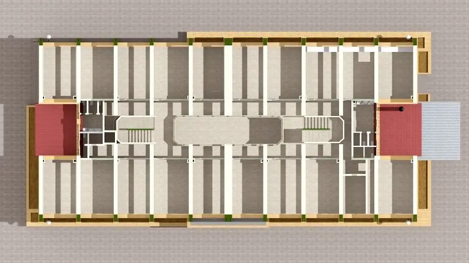 College of three floors complete.Each plant is attached to an empty to be able to move it independently.It is ideal for virtual tours, to be used in education for spatial orientation.It is completely built inside: classrooms, offices, auditorium and services.It does not contain furniture.