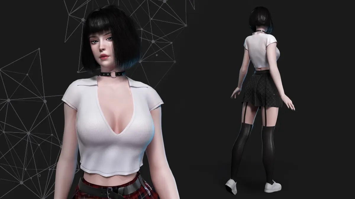 Live link face/Aplle blandshapes/Morph targets are avaliableModel is completely modular, you can remove or add any part you wantThe full body under the clothes is included. Nude texture version is included!Physics for hair and clothing is enabled in UnrealEasy Color change of any part via Material Instances in Unreal5 different outfitsAditional asset: Ball