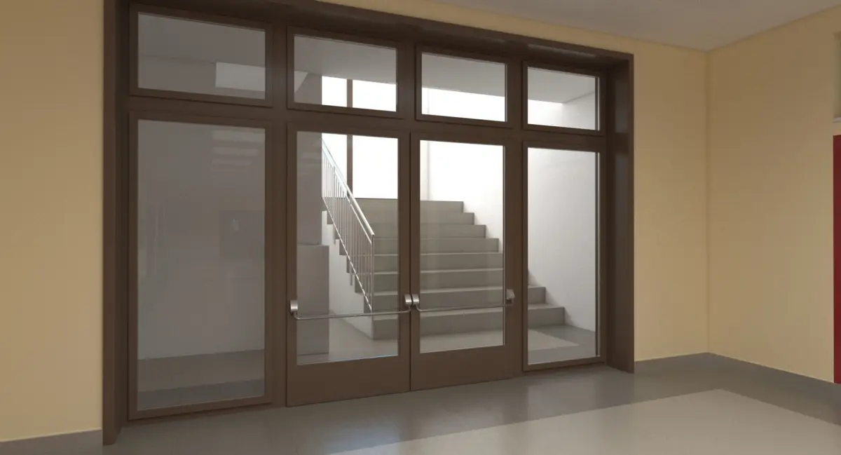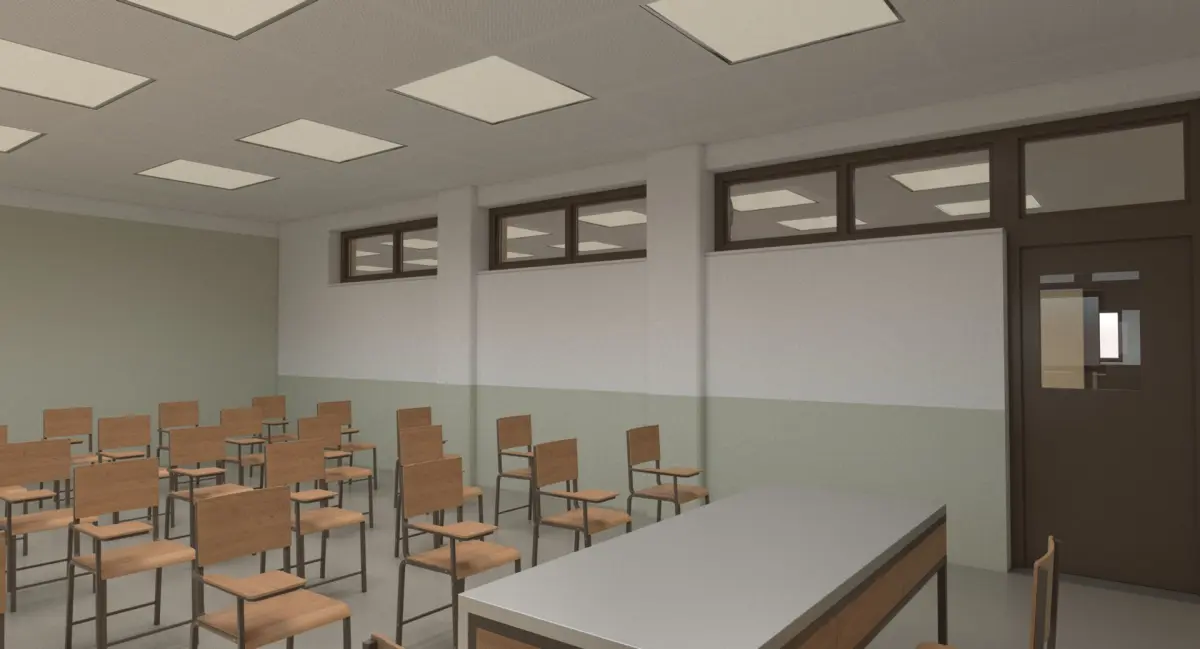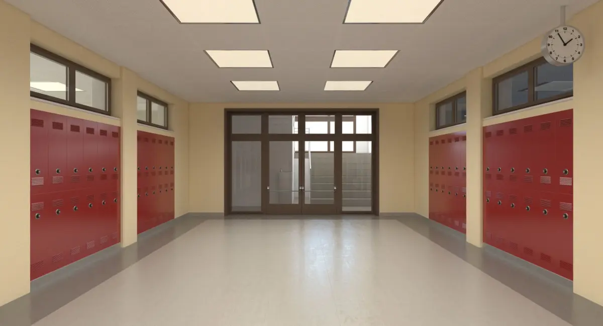 A DETAILED 3D MODEL OF A SCHOOL HALLWAY / CLASSROOM: