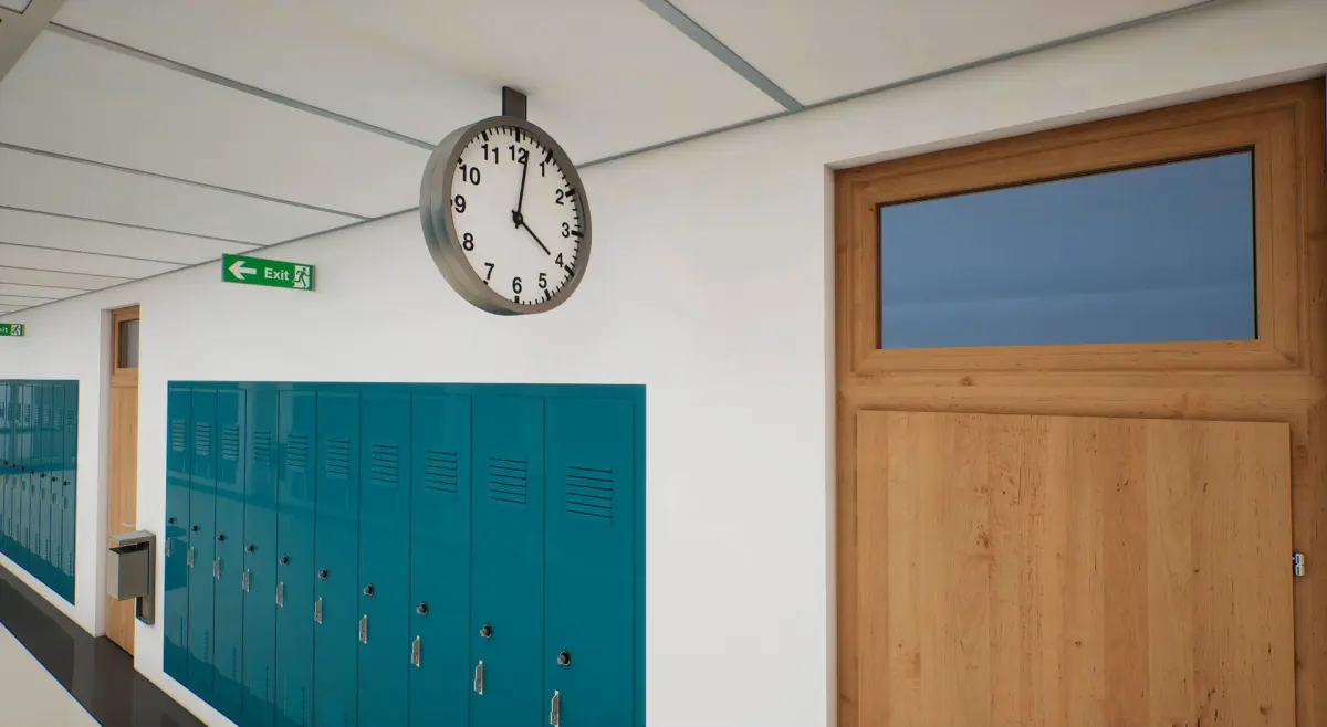 A DETAILED 3D MODEL UNREAL ENGINE UE4 ASSET OF A SCHOOL HALLWAY SCENE: