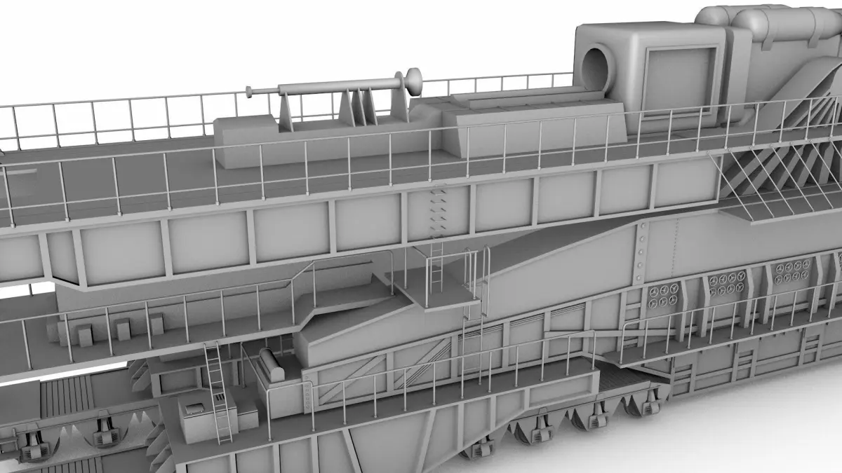 Length 47.3 metres (155 ft 2 in)Barrel length 32.5 metres (106 ft 8 in) L/40.6Width 7.1 metres (23 ft 4 in)Height 11.6 metres (38 ft 1 in)