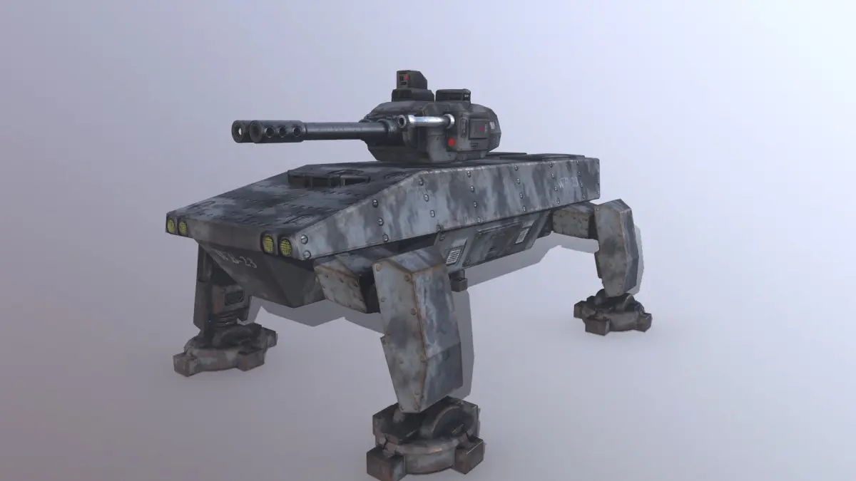 Model of a futuristic quad mecha AIFV. Originally designed in 3D-Coat (sculpt/retopo/painting), it was later reworked in Blender, especially for rigging purposes.This object comes with textures varying from to 2K to 8K for the hull on the full model available on CGTrader. Textures includes base color, normal map, metallic and roughness ; they can occasionnaly have also emissive map.The model is low poly and PBR (metal/rough).