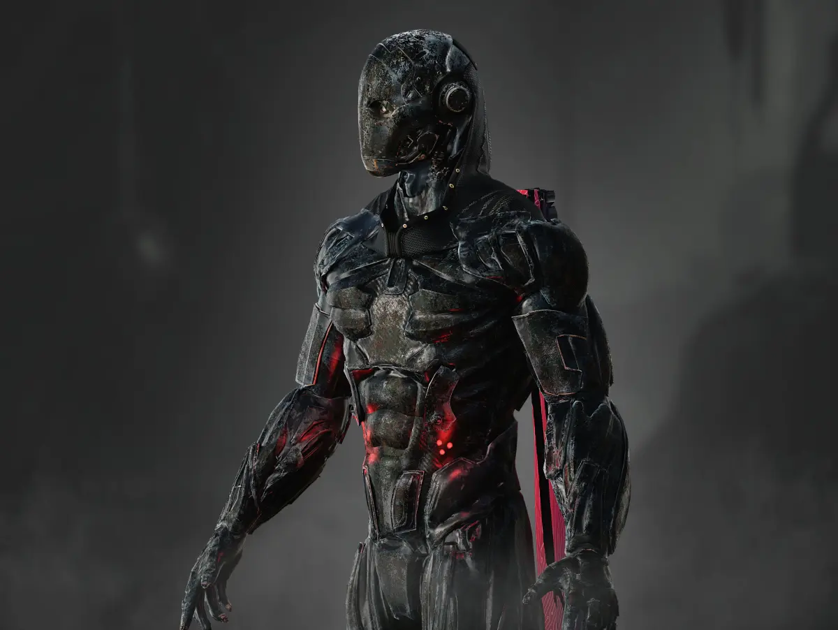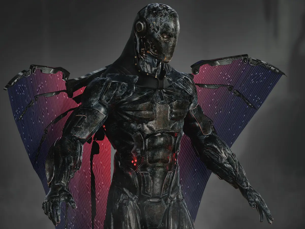 Highly detailed low poly model Sci Fi Airborne Cyborg