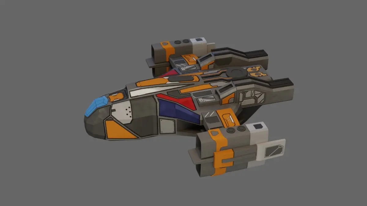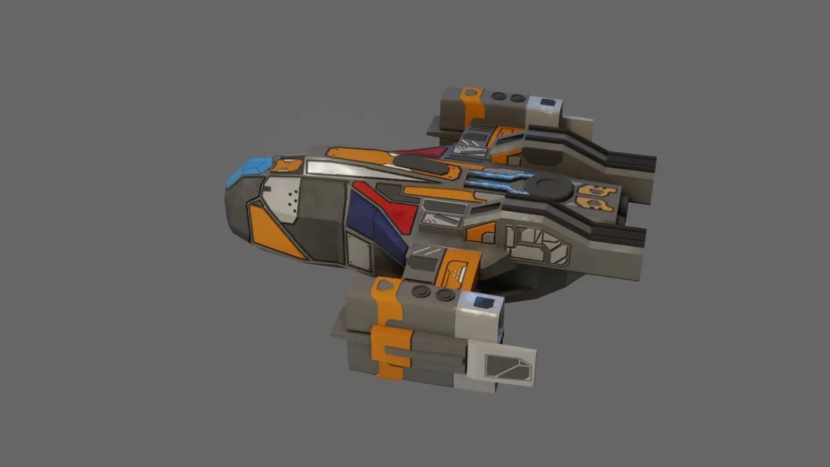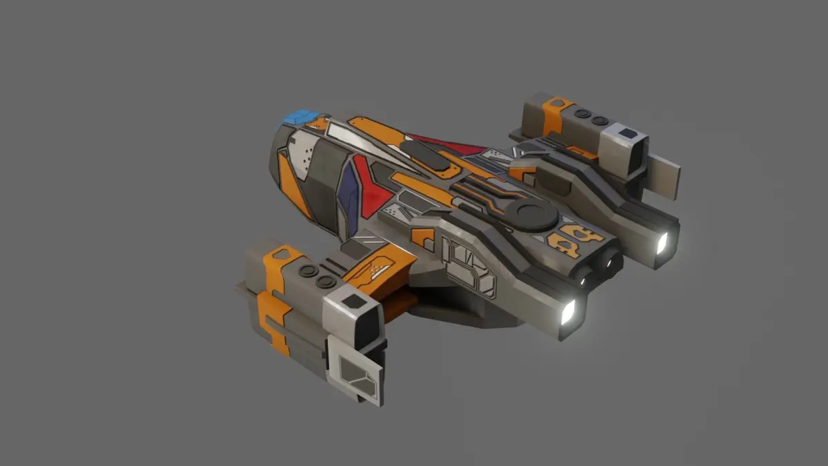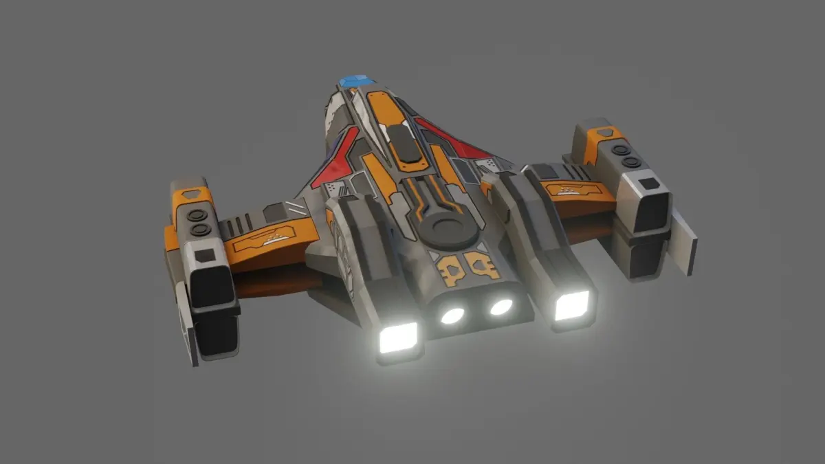Sci-Fi Aircraft 3D model (Orange color).This is 3D model is made with Blender 2.93.All the previews are rendered in EEVEE render engine.This is a Low poly and Game ready model, ready to import in any of Game engines.PBR textures are used in this model.
