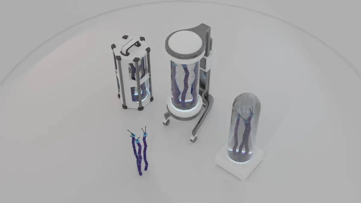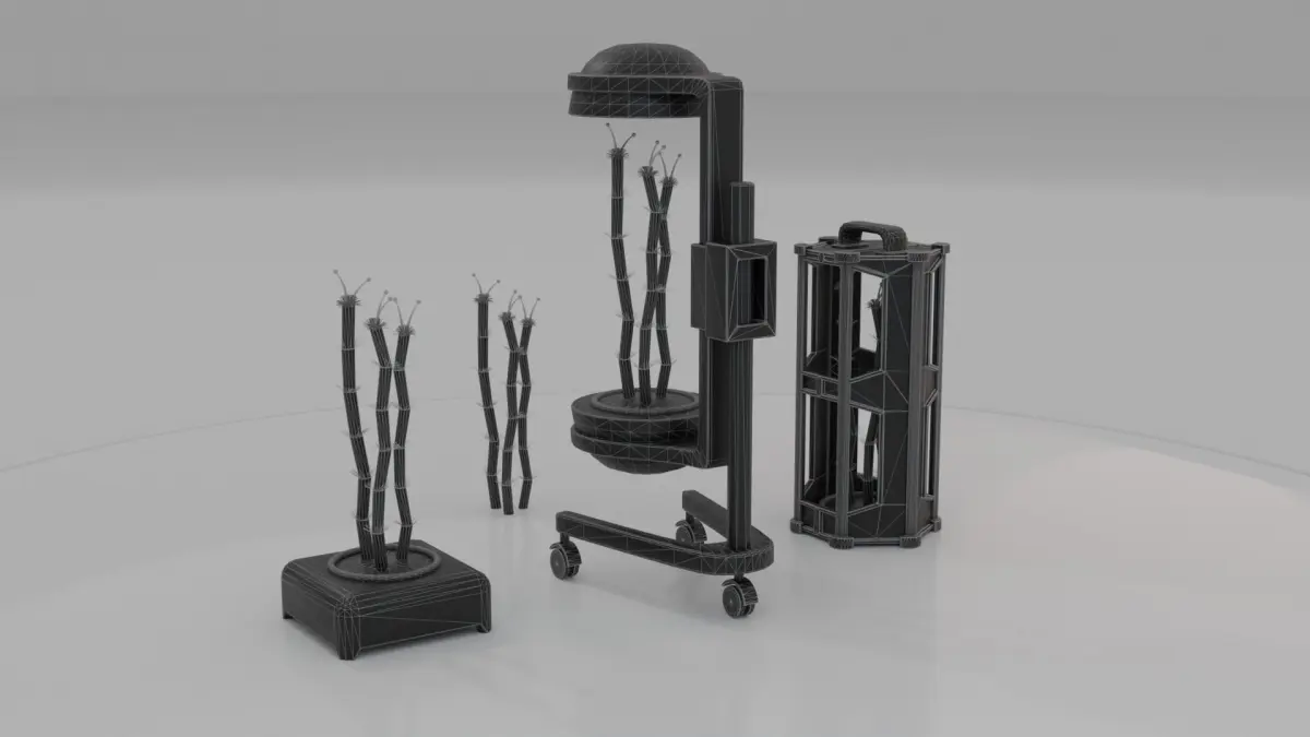 An unknown alien plant species with containers set. These containers allow safe carriage. Low poly and game ready / VR ready 3D models with low polygon count. Specifically created for gaming projects and VR projects in anygame engine. Natively modeled in blender, native file included for modify options.