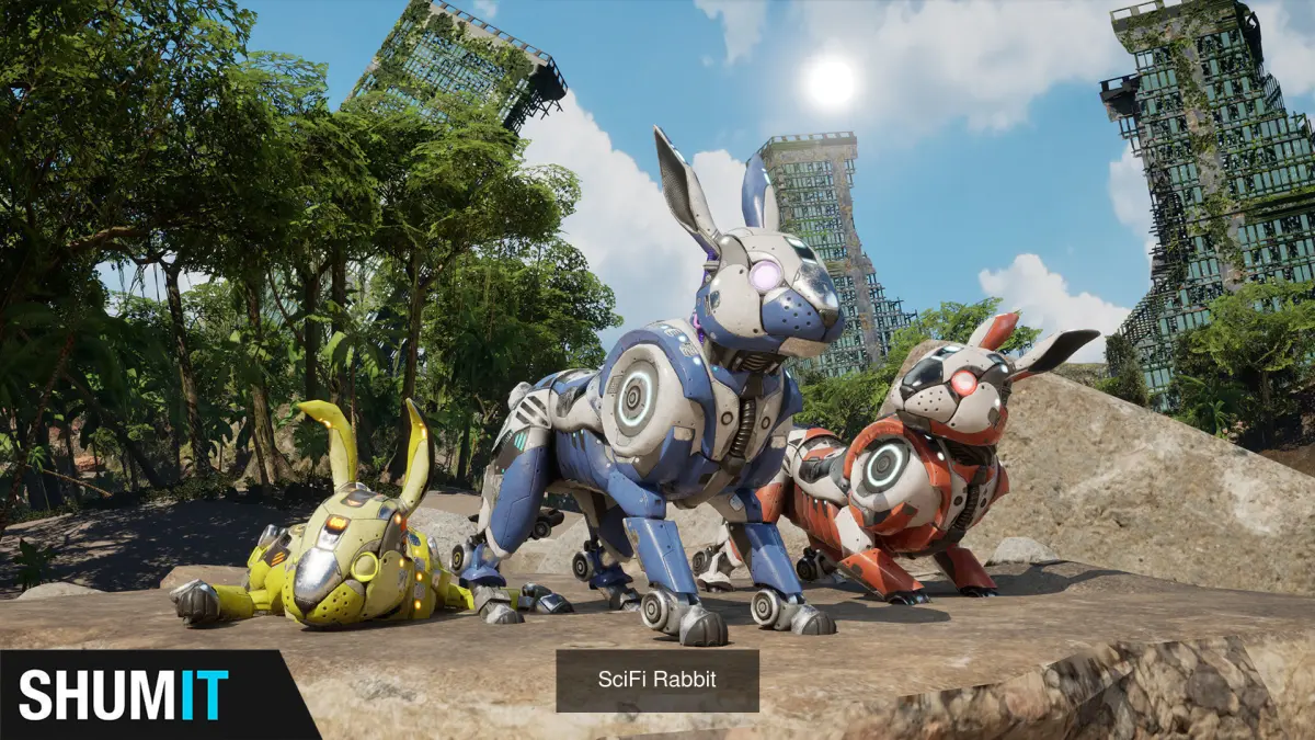 SciFi RabbitCharacter has Custom skeleton (Image skeleton preview included)4 skin.Inst Mat color blending for each skin19 animation includedAttack - 1Walk - 3 (F, L, R)Run - 1Idle - 4GetHit - 8Death - 2Character:Triangles: 12 571Vertices: 8 218
