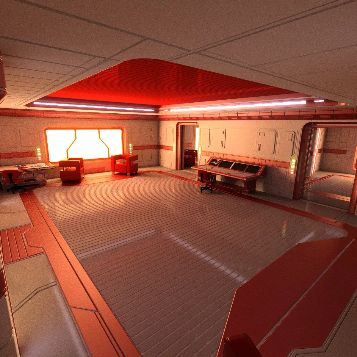 A science fiction style interior scene, an apartment. It was modelled in Blender 2.69 and has been exported to .obj and .3ds formats. All details are modelled. No textures included.