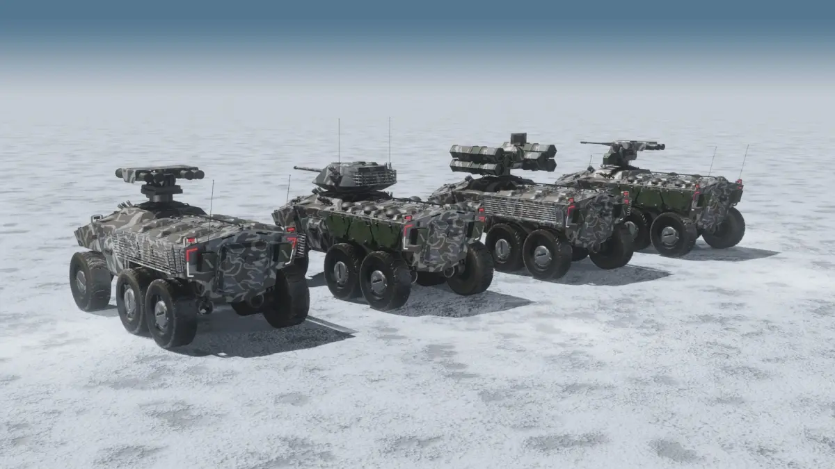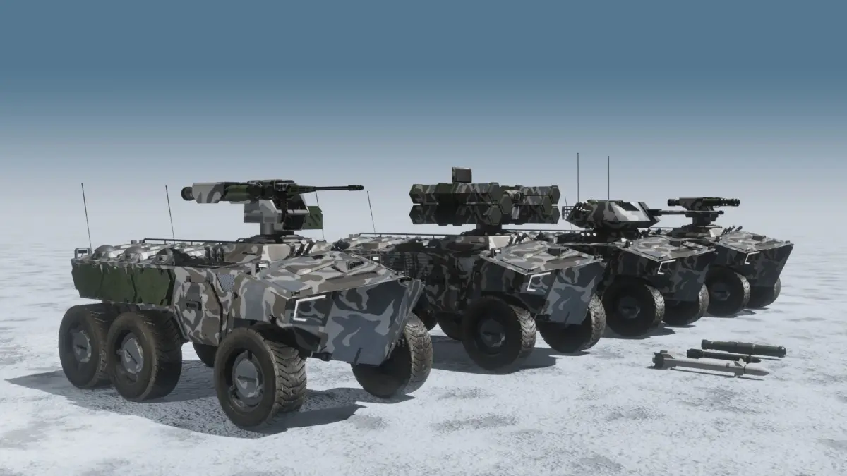 This is a collection of a series variation of fictional apcs with winter camouflage. 4 models included, weapon station turret, sam missile launcher, atgm launcher, manned turret. All textures are packed separatly and also attached into the blend file. Some materials may only work under blender.