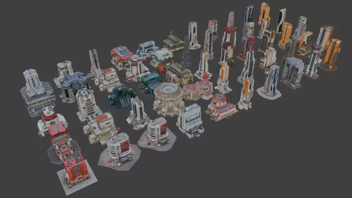 A collection of 50+ modular sci-fi buildings and structures — perfect for futuristic cityscapes, alien colonies, or industrial environments. Includes towers, communication hubs, bases, factories, and urban units. Designed with stylized PBR textures and game-ready topology for quick integration into your 3D scenes or levels.