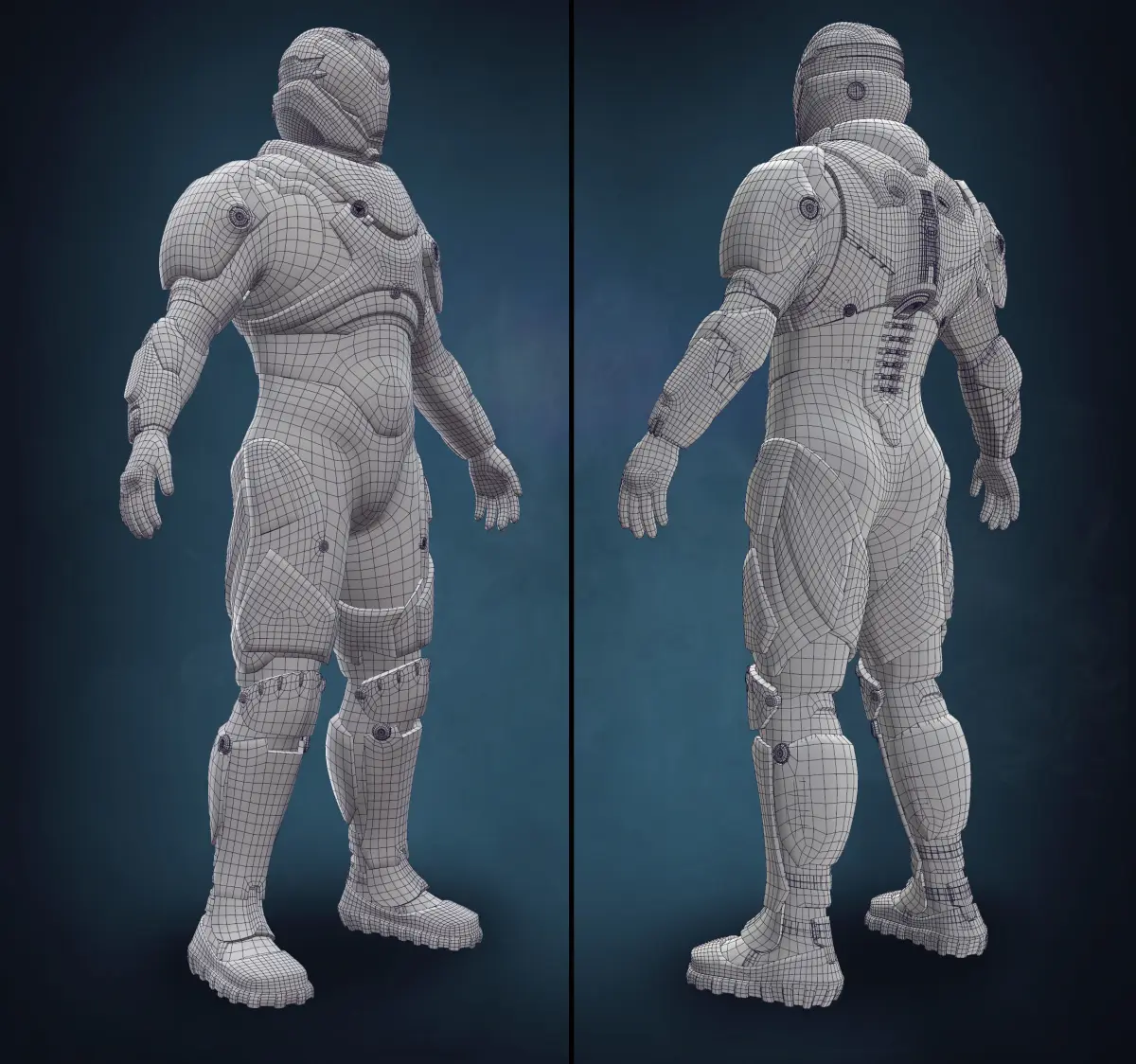 High detailed fully rigged polygonal model of SCI-FI Soldier and rifle created in Maya 2018. Renders done using marmoset 3.Model has three PBR textures sets 4096x4096, also it can be rendered in any game engine.Model contains only quads.Armor polycount is 97624 triangles and rifle polycount 31120 trianglesFile formats: