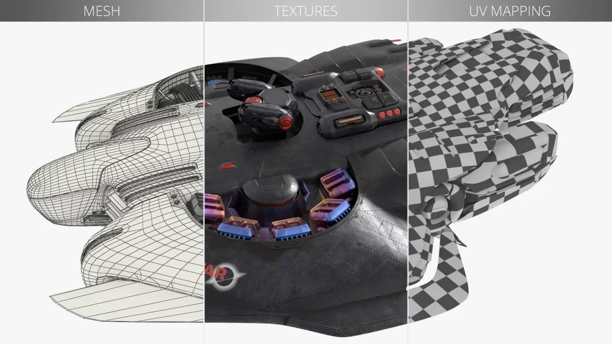- Model is fully textured with all materials applied.