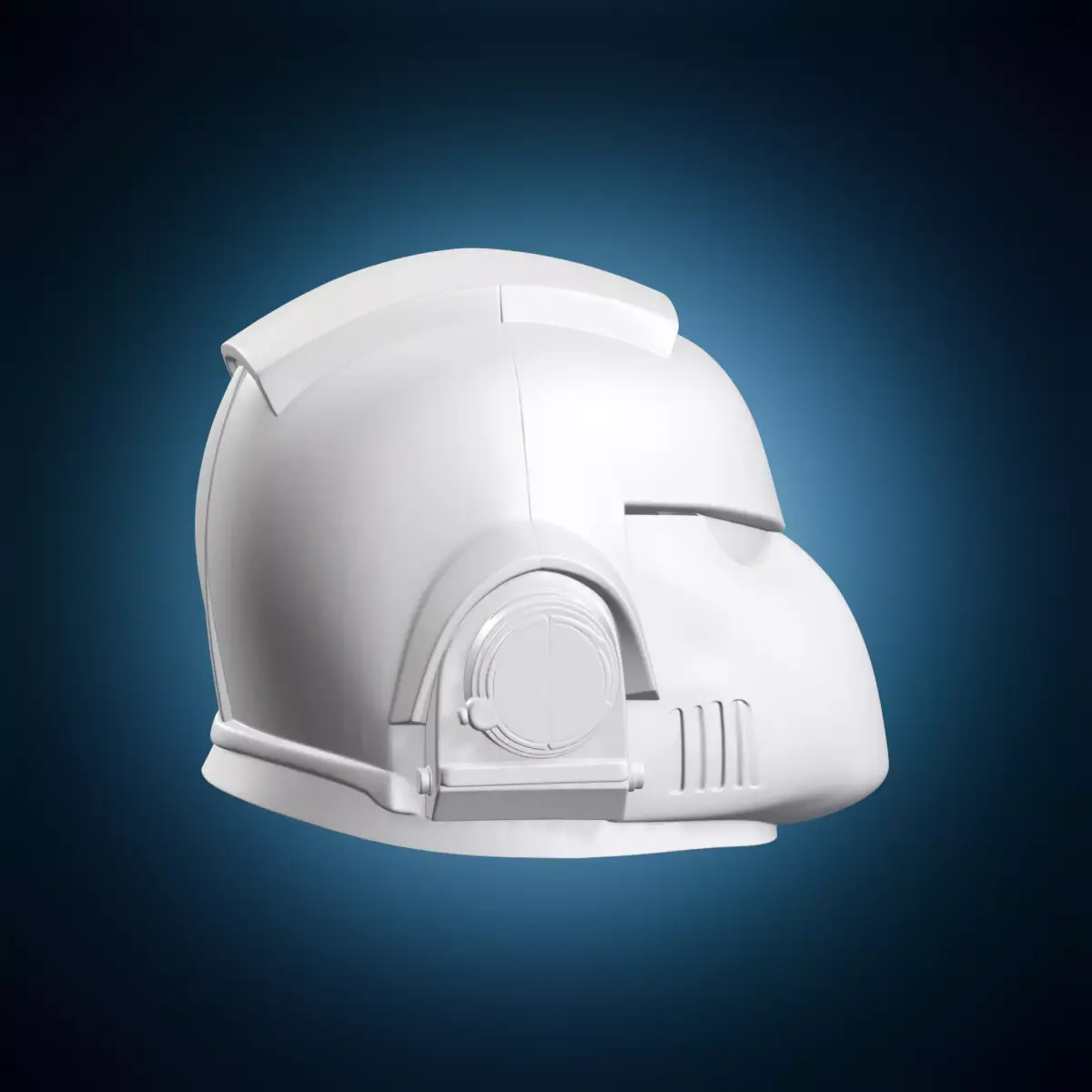 A highly detailed 3D model of a futuristic armored helmet worn by sci-fi soldiers. This model is suitable for use in video games, film productions, and architectural visualizations. The design features a sleek and intimidating appearance, with metallic armor plating and a retractable visor. Perfect for creating realistic scenes or characters in science fiction settings.